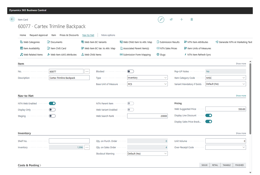 Nav-to-Net™ is an eCommerce solution built inside Microsoft Dynamics 365 Business Central (NAV). All product data, pricing, inventory, and customer information is managed directly within BC — no external middleware or data duplication. Orders from the webshop flow automatically into Business Central in real time.