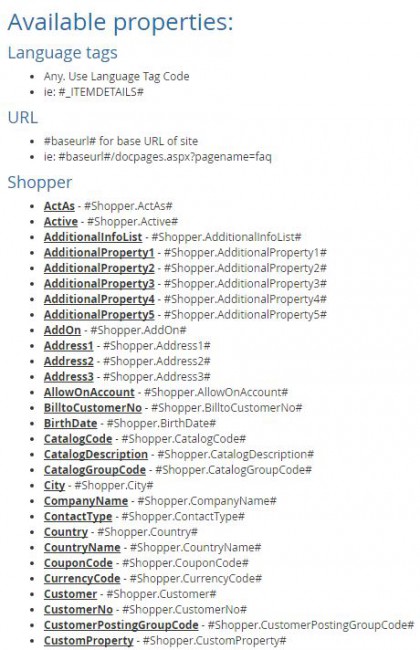 Administrators of Nav-to-Net™ can easily access the properties available to them for use as tokens including item, category, website, and customer information. A double hash tag (##) is all it takes to use tokens in Multi-Line Text Box Tool or simply MLTB (our in-NAV content management system) to grab the desired value and replace it with unique content. Anywhere you can use MLTB and language tags throughout the site, you can use Nav-to-Net™ tokens to create customized content and templates for your customers.